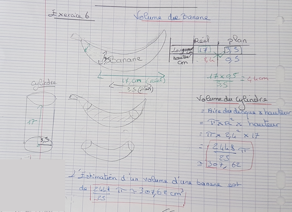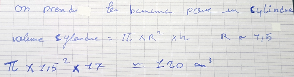 - Calculer : mise en œuvre de la formule idoine associée au modèle choisi, ou à la stratégie de mesure d’un volume avec un verre doseur