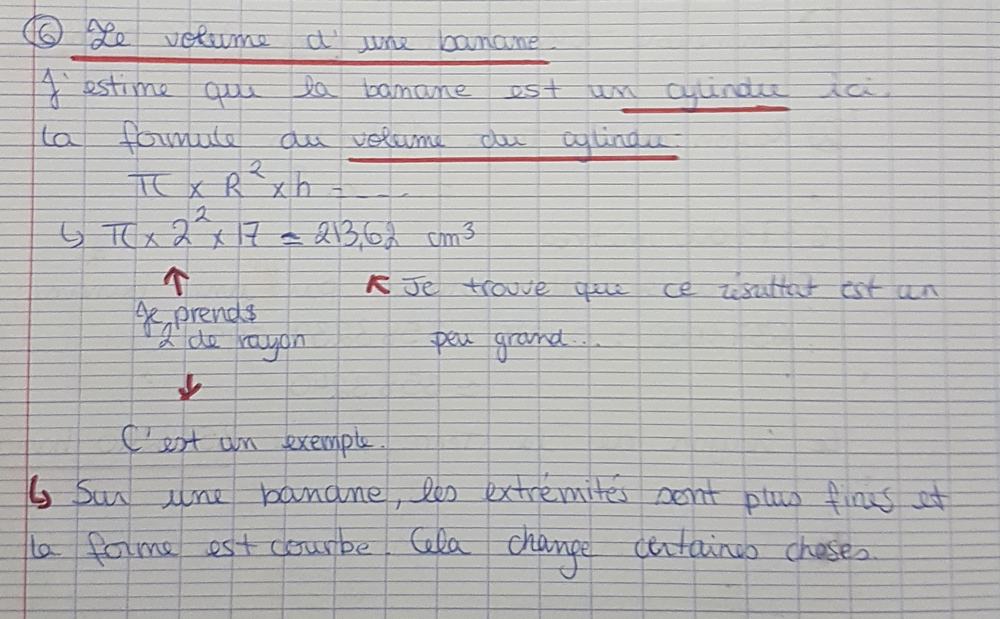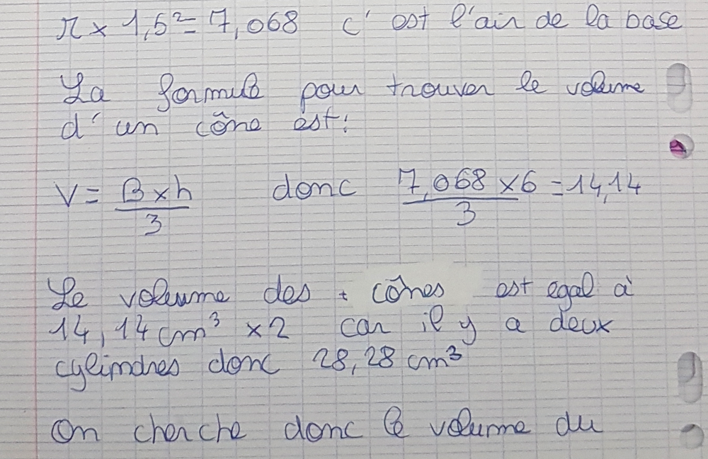 - le choix du modèle (cylindre, pavé droit, cylindre + cône, autre méthode) est-il explicité sur la copie ?