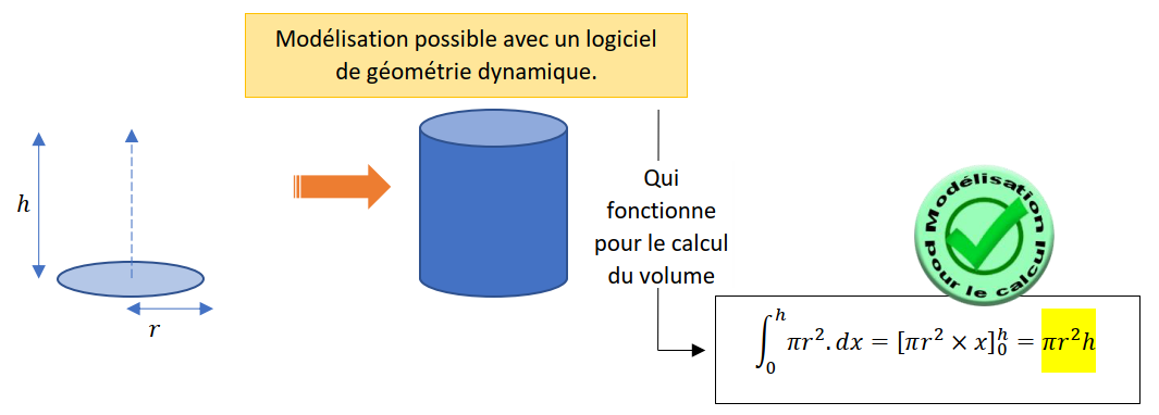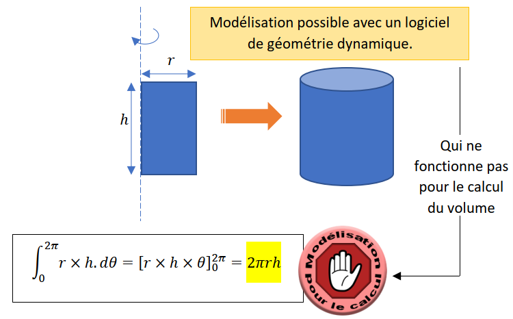 Le cylindre de révolution ou le rectangle qui « tourne » autour d’un axe permet d’obtenir une modélisation du cylindre géométriquement, mais ce n’est pas le bon choix pour modéliser le calcul du volume.