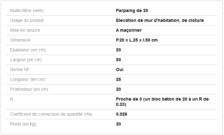 Calcul du volume extérieur du parpaing : 20x50x25 = 25 000 cm3