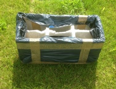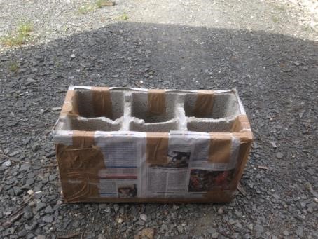Le parpaing de départ. | Pour éviter de percer le sac étanche… |