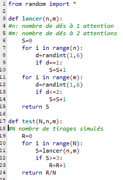 Ici 1000 tirages sont effectués soit sur 5 dés environ 17% de chance d’accident.