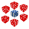 Chaque dé ne peut être lancer qu’une seule fois durant un tour. Il y a 1 dé bleu avec une face marquée d’un panneau « attention » et quatre dés rouges avec deux faces marquées d’un panneau « attention ».