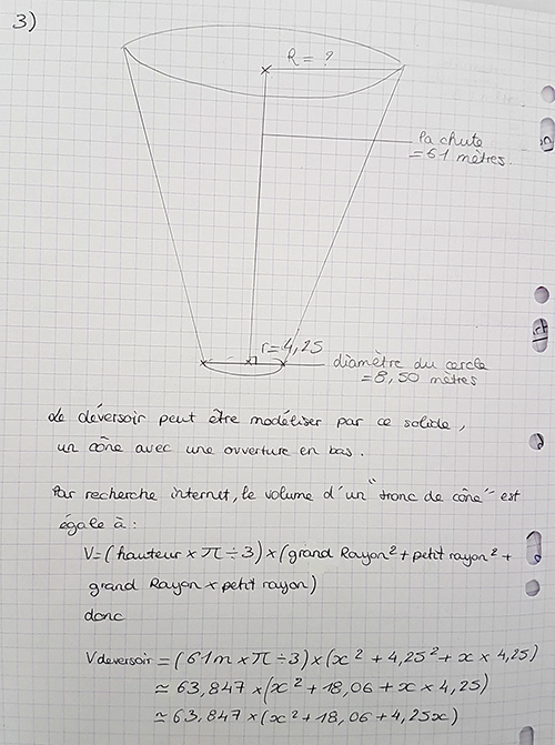 Modéliser ce déversoir par un solide que vous décrirez et dont vous calculerez le volume.