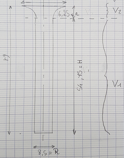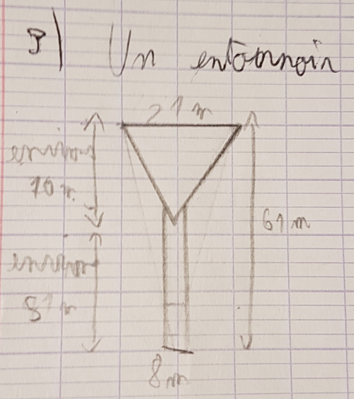 L’entonnoir est bien décomposé en une partie qui sera assimilée à un cône et une partie cylindrique.