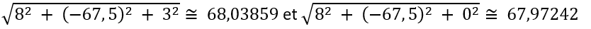 Pour la voie verte, on regarde donc le produit scalaire entre le vecteur directeur (8;-67,5; 3) et l'horizontale (8;-67,5; 0) :