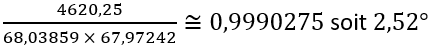 On peut reproduire les mêmes calculs pour la voie Rouge, et on obtient environ 3,61° environ.
