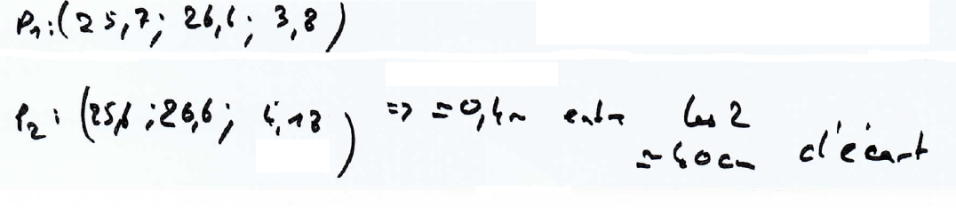 Une fois les paramètres trouvés, on récupère les deux points des voies, l'un au-dessus de l'autre pour voir leur distance