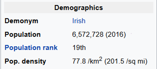 1) Check the population of these five cities are equivalent to about 14 % (= per cent) of the population of Ireland.