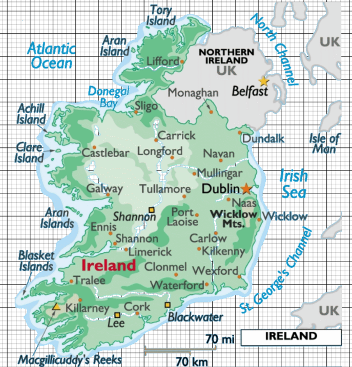 2. Use the map on the right to calculate an estimate of Ireland’s area.