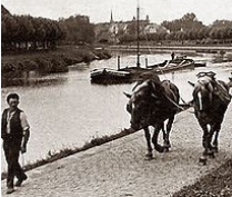 Le halage est un mode de traction terrestre des péniches, des coches d’eau et d'une manière générale des bateaux fluviaux, qui consiste à les faire avancer le long d’une rivière, d’un canal, au moyen d’une corde tirée jadis à force de bras ou par des chevaux, à présent par un engin automoteur. Source wikipedia
