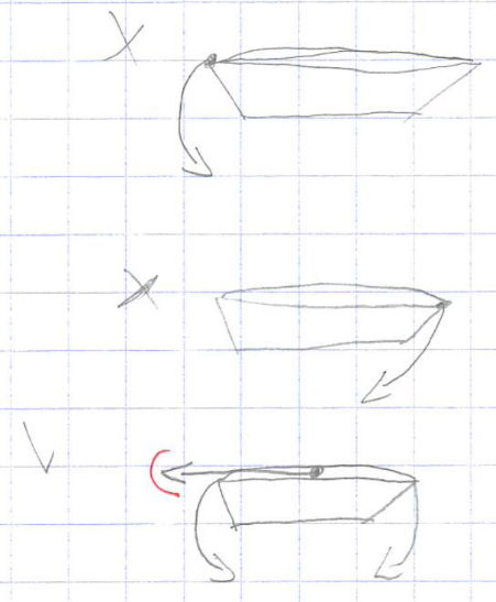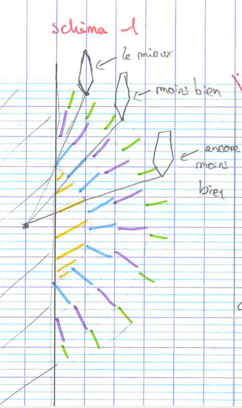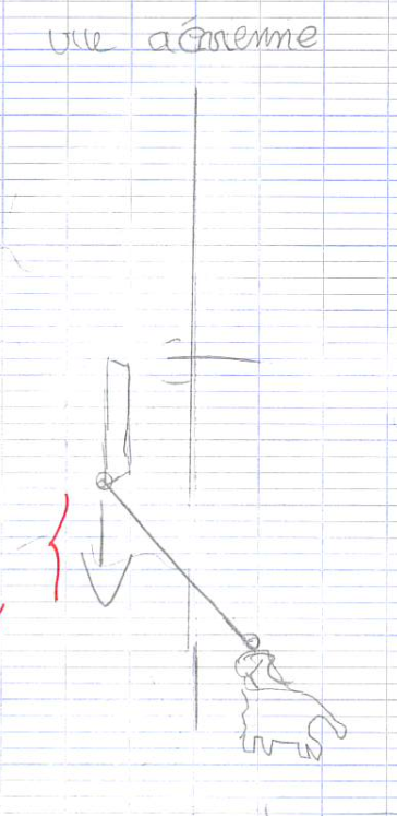 Toutes font appel à un schéma que je ramasse en fin de séance. Cela permet de regarder les propositions et de présenter dans un certain ordre les représentations effectuées. Le premier schéma proposé donne juste la façon de tracter le bateau avec très peu de commentaires.