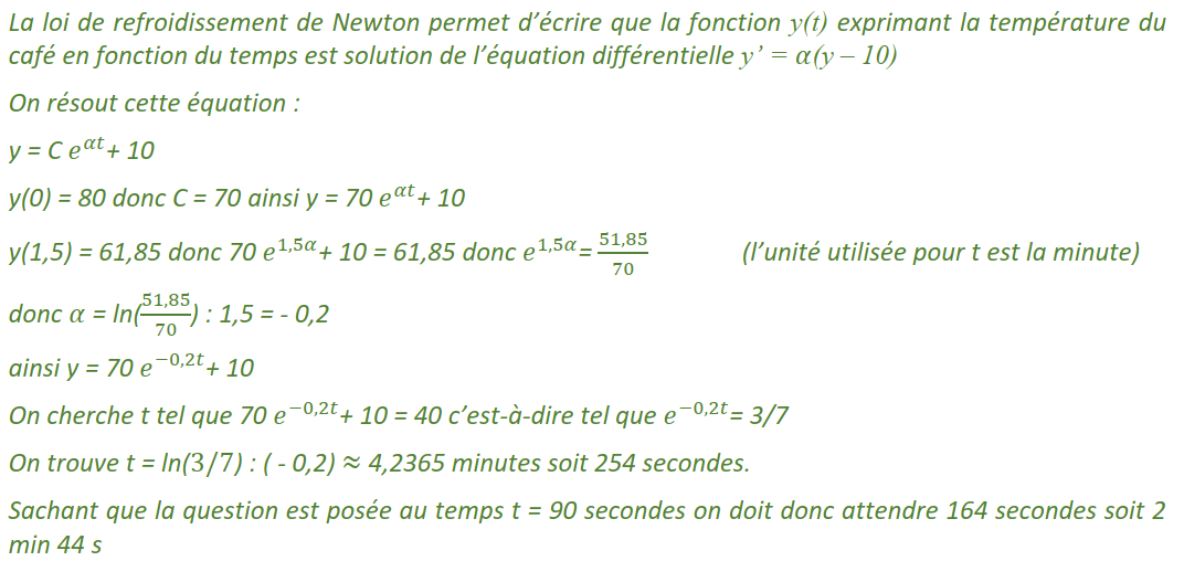 Rappel : la loi de refroidissement de Newton stipule que le taux d'évolution de la température d'un corps est proportionnel à la différence entre la température de ce corps et celle du milieu environnant..