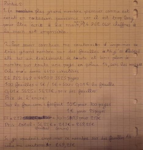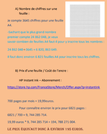 Nous avons vu que le plus grand nombre premier connu est 282589933-1 1. Explique l’intérêt de la notation puissances. 2. Combien cela me coûterait si je voulais imprimer ce très grand nombre sur des feuilles A4. 3. Le toit du collège est-il suffisamment grand pour pouvoir disposer toutes les feuilles les unes à côté des autres ?