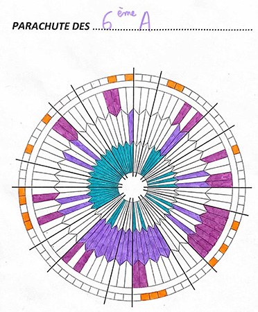 - Séance 2 : Les élèves ont choisi une devinette en trois mots à coder en binaire et ont réalisé le parachute codé de la classe.