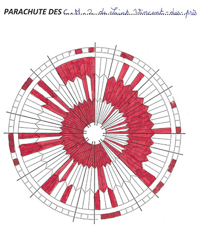 (4) Parachute codé avec les mots "OUTIL", "TRACER" et "CERCLE" pour faire deviner "COMPAS"