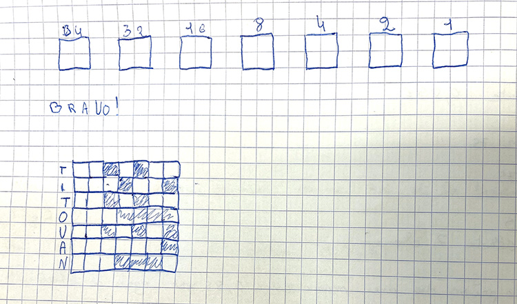 (3) Prénom "TITOUAN" codé sous forme d'image binaire
