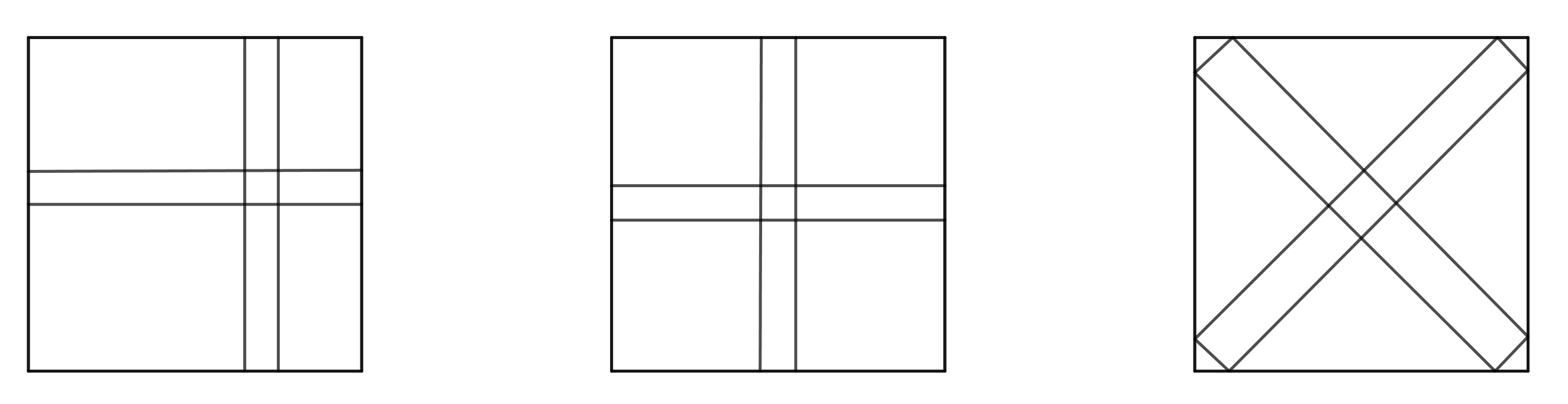 La modélisation la plus courante rencontrée est celle qui consiste à calculer l’aire du carré et soustraire l’aire des allées. Cependant, aucun élève n’arrive à modéliser correctement l’équation car ils oublient que l’intersection des allées est comptée « deux fois ».