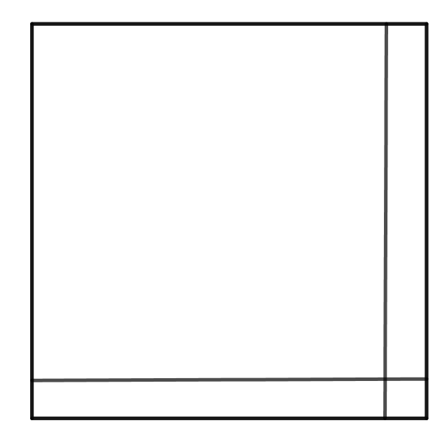 Cependant, une autre élève, modélise différemment : elle calcule la surface restante dans le jardin une fois les allées enlevées. Avec un peu d’aide, elle arrive à la modélisation suivante :