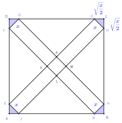 L’aire bleue (l’aire des 4 coins) est égale à x^2.