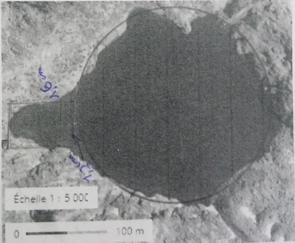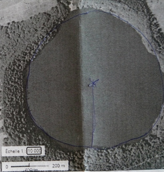 Tous les élèves ont proposé une modélisation qui les satisfaisait mais une grosse partie s'est arrêtée ensuite trouvant les calculs trop fastidieux. Une élève a abordé le lac d'Arrédoun et proposé le découpage suivant avec un cercle et un rectangle :