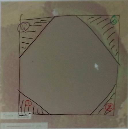 Pour le carré : un à l'extérieur un à l'intérieur ou découper les coins. L'idée de l'encadrement à été (hélas) abandonnée.