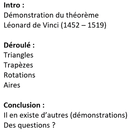 Après plusieurs passages de différents binômes qui ont permis d’identifier les principaux écueils dans l’expression et l’attitude comme dans les contenus mathématiques, le temps de travail sur l’oral lors de la semaine des mathématiques a clairement mis en évidence l’intérêt d’une présentation structurée, par exemple sous la forme :