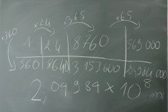 - Des calculs sont écrits au tableau afin d’appuyer ce qui est dit.