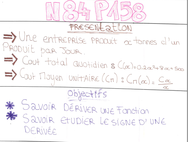 Il s’agit de restituer un exercice travaillé à la maison et présenté devant quelques élèves. Le travail s’est déroulé en plusieurs temps :