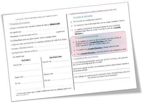 Un deuxième travail lié à l’EMC est également nécessaire pour que les élèves comprennent la façon de voter pour un président de la République aux Etats-Unis.