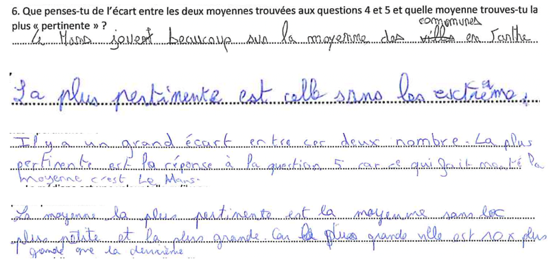 6. Que penses-tu de l’écart entre les deux moyennes trouvées aux questions 4 et 5 et quelle moyenne trouves-tu la plus « pertinente » ?