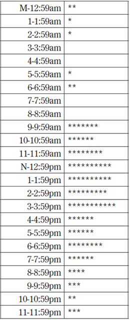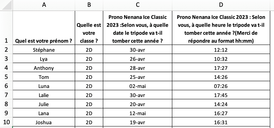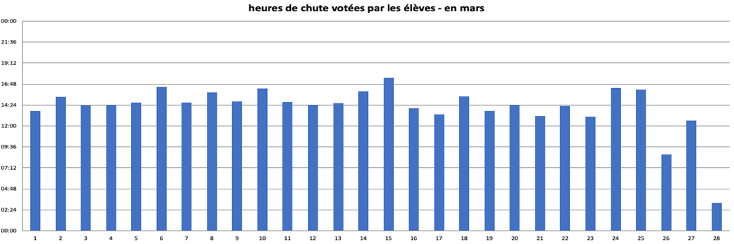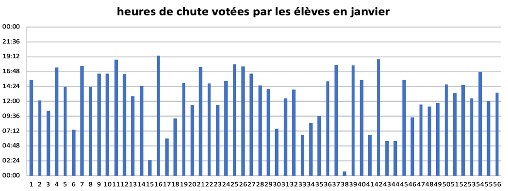 L’étude comparative des pronostics de janvier et mars montre en particulier que les élèves ont tenu compte des horaires des années précédentes et leurs pronostics sont plus uniformes (le trépied tombe souvent en début d’après-midi) :