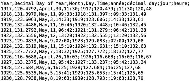 On trouve également l’image ci-contre montrant l’heure de chute du trépied chaque année.