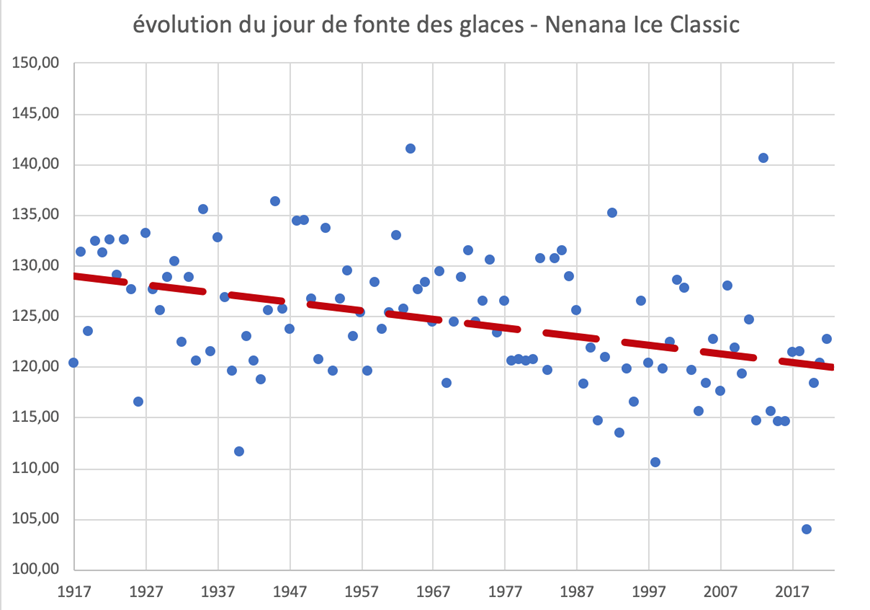 Ce temps aboutit à un travail particulier sur tableur étudiant l’évolution de la date de fonte chaque année de 1917 à 2022.