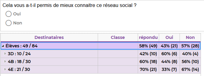 Un sondage a été fait, auprès des élèves cette fois, afin d'avoir un premier retour de leur part sur ce type d'approche. Il était constitué de 3 questions. Deux questions fermées :