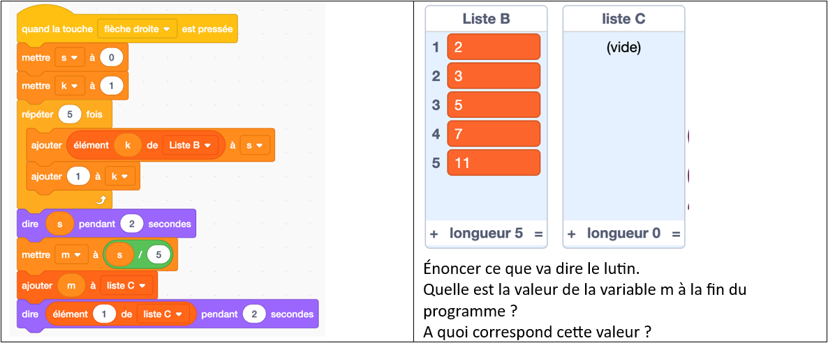 En particulier, je n’avais pas pensé à préparer de questions flash pour aider les élèves à se familiariser aux listes (et poursuivre la compréhension des variables).