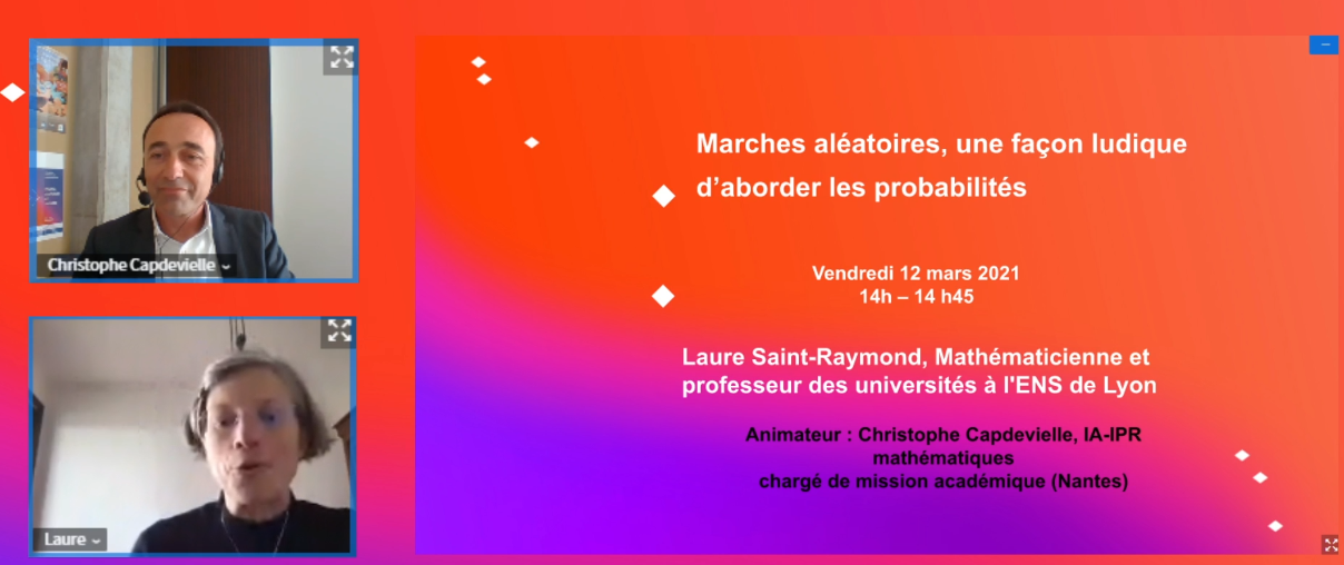 Le Grand Forum des Mathématiques Vivantes 2021 (GFMV) s’est déroulé du 10 mars au 12 mars, en parcourant de nombreux champs du cycle 1 à l’université. Lors de la troisième après-midi du GFMV, un premier temps s’est déroulé avec une conférence de Laure Saint-Raymond, mathématicienne au parcours fulgurant. Cette présentationa été suivie d'une conférence proposée par Vincent Calvez.