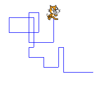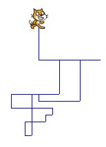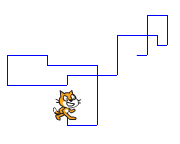 Il est proposé aux élèves de programmer une marche aléatoire du lutin du bas de l’écran vers le haut de l’écran avec comme consigne qu’à chaque déplacement, que l’on va répéter un grand nombre de fois, le lutin avance « aléatoirement » soit « en diagonale vers la gauche » (orientation à - 45°) soit en « diagonale vers la droite » (orientation à 45°).
