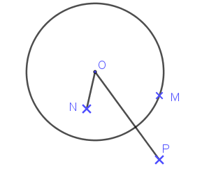 La définition gagne en visibilité si on rajoute un point N à l’intérieur du disque et un point P à l’extérieur du disque. En explicitant que ON<5 et OP>5. | | |