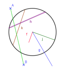 On comprend mieux ce qu’est une corde lorsque l’on montre l’image suivante en disant que h et k sont des cordes alors que [AB], f, j et g n’en sont pas. | |