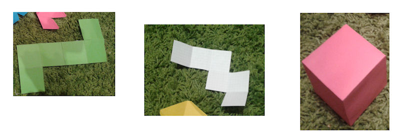Les élèves ont alors commencé à travailler avec une autre technique : construire les différents polyèdres en traçant leur patron.