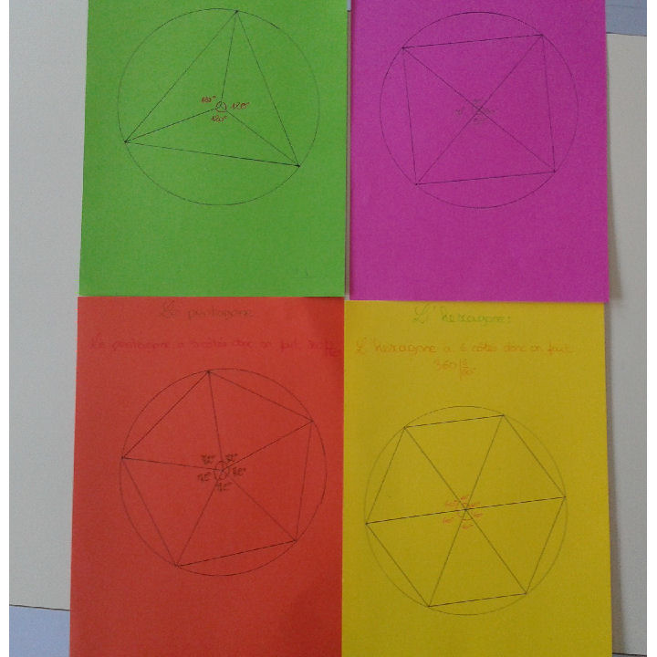 En sixième, lors du travail sur les angles, les élèves ont découvert la notion de polygone régulier (côté de même longueur, angle de même mesure, inscriptible dans un cercle).