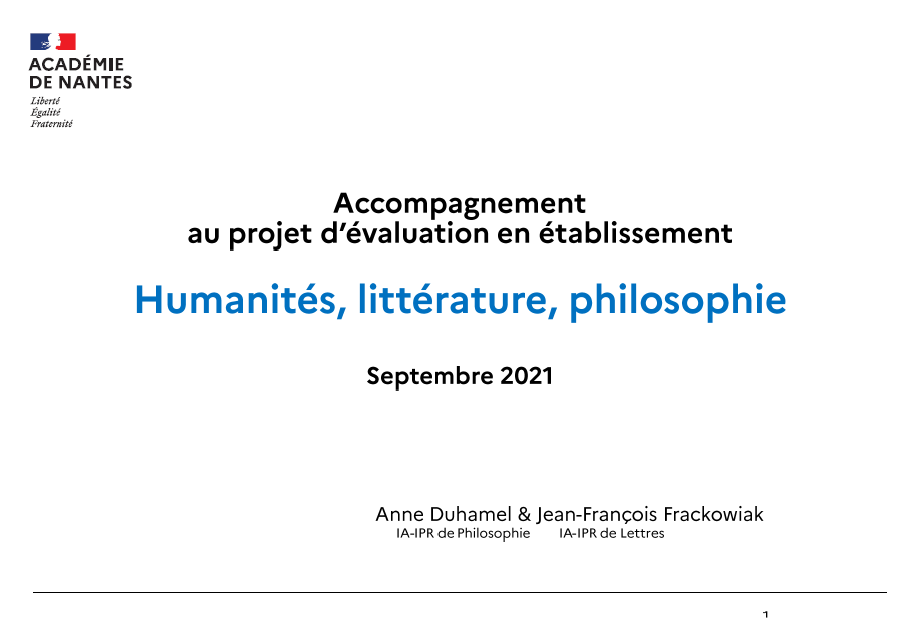 Document d'accompagnement au projet d'évaluation d'établissement en HLP, rédigé par Anne Duhamel, IA-IPR de philosophie pour l'Académie de Nantes et Jean-François Frackowiak, IA-IPR de Lettres.
