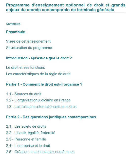 Programme d’enseignement optionnel de droit et grands enjeux du monde contemporainde terminale générale