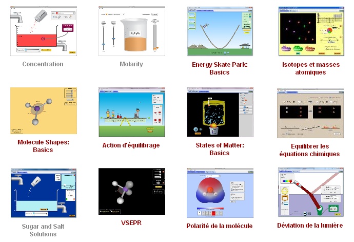Le site PhET interactive simulations, développé par l'University of Colorado at Boulder, propose un ensemble important de simulations pédagogiques interactives en sciences (physique, chimie, SVT, mathématiques).