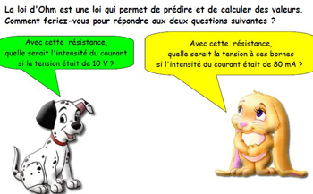Une animation leur permet de reprendre un série de mesures, et les accompagne (et les aide le cas échéant) dans le tracé du graphique, jusqu'à la constatation de la relation de proportionnalité et la formulation de la loi d'Ohm.