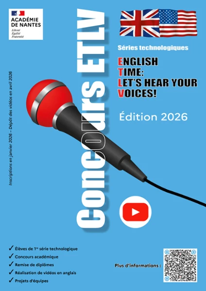 Ce concours s’inscrit pleinement dans le cadre du parcours de formation des élèves, notamment en ce qui concerne l'aisance orale, évaluée lors du Grand Oral et dans le cadre de l’ETLV comme préconisé par le Guide de l’Évaluation de novembre 2023. Il représente une excellente opportunité pour mettre en lumière votre travail en ETLV, proposer un défi motivant à vos élèves et valoriser leurs productions en anglais au sein de votre établissement.