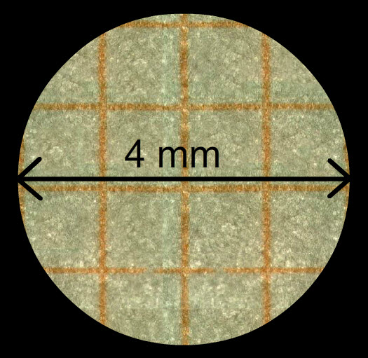 L'élève doit ensuite "mentalement" estimer la proportion que l'objet représente par rapport au diamètre du champ oculaire. Ici par exemple, on peut estimer que l'objet représente 1/3 du champ oculaire. |