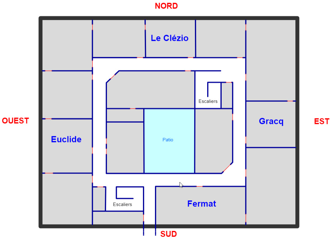 • la salle Le Clézio (en bleu) est au nord donc elle est froide, c'est logique mais pourtant c'est la plus petite !?