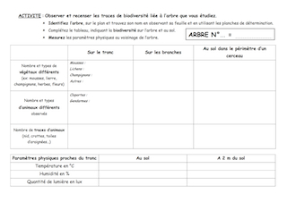 A partir d'observations des êtres vivants et de mesures de températures, humidité et luminosité à proximité des arbres du collège, les élèves répartis par groupe de travail, doivent vérifier si leurs résultats correspondent aux données apportées par les scientifiques. Les résultats des différents groupes seront ensuite discutés en classe.
